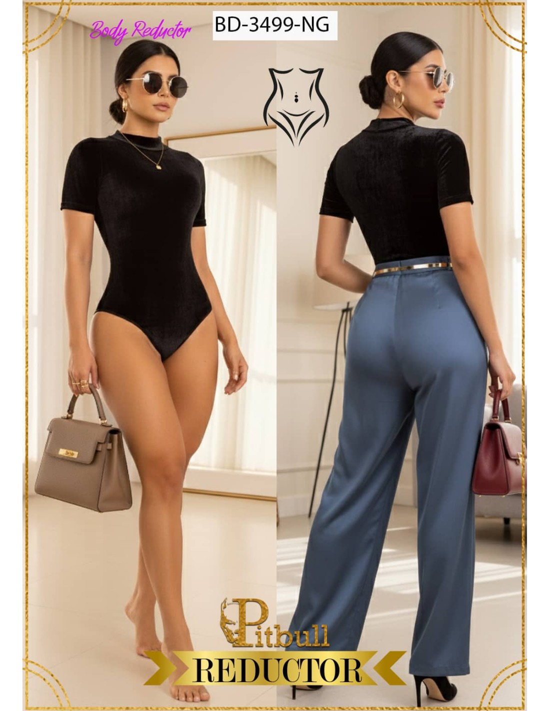 El Body Reductor Pitbull BD3499 combina la funcionalidad de una prenda moldeadora con el estilo moderno de un body de manga corta. Su diseño ofrece un efecto reductor en el abdomen y cintura, resaltando la silueta femenina con comodidad y elegancia.