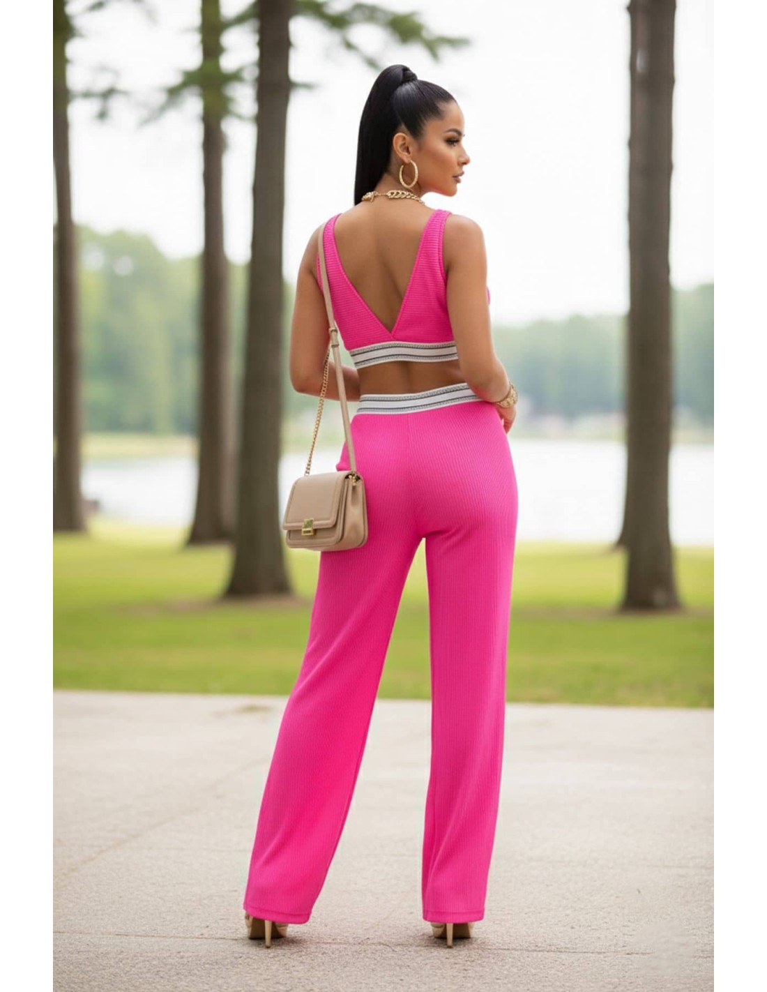 Disponible en dos colores exclusivos: fucsia y blanco, este conjunto es perfecto tanto para ocasiones elegantes como para un look chic y relajado. Combínalo con sandalias de tacón o accesorios dorados para un estilo aún más sofisticado.